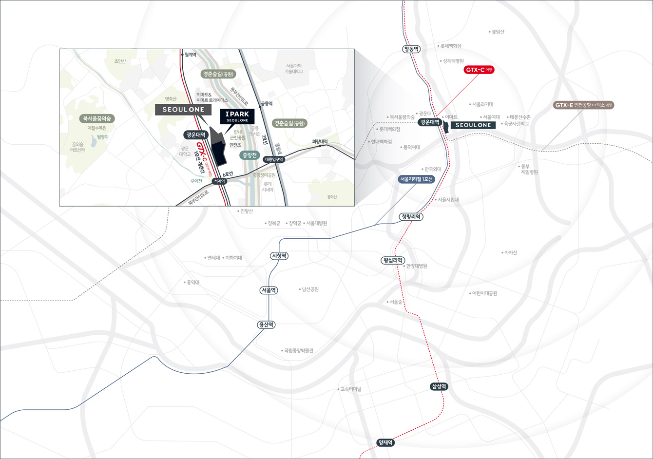 GTX-C(예정), GTX-E(예정), 지하철 1,6,7호선까지